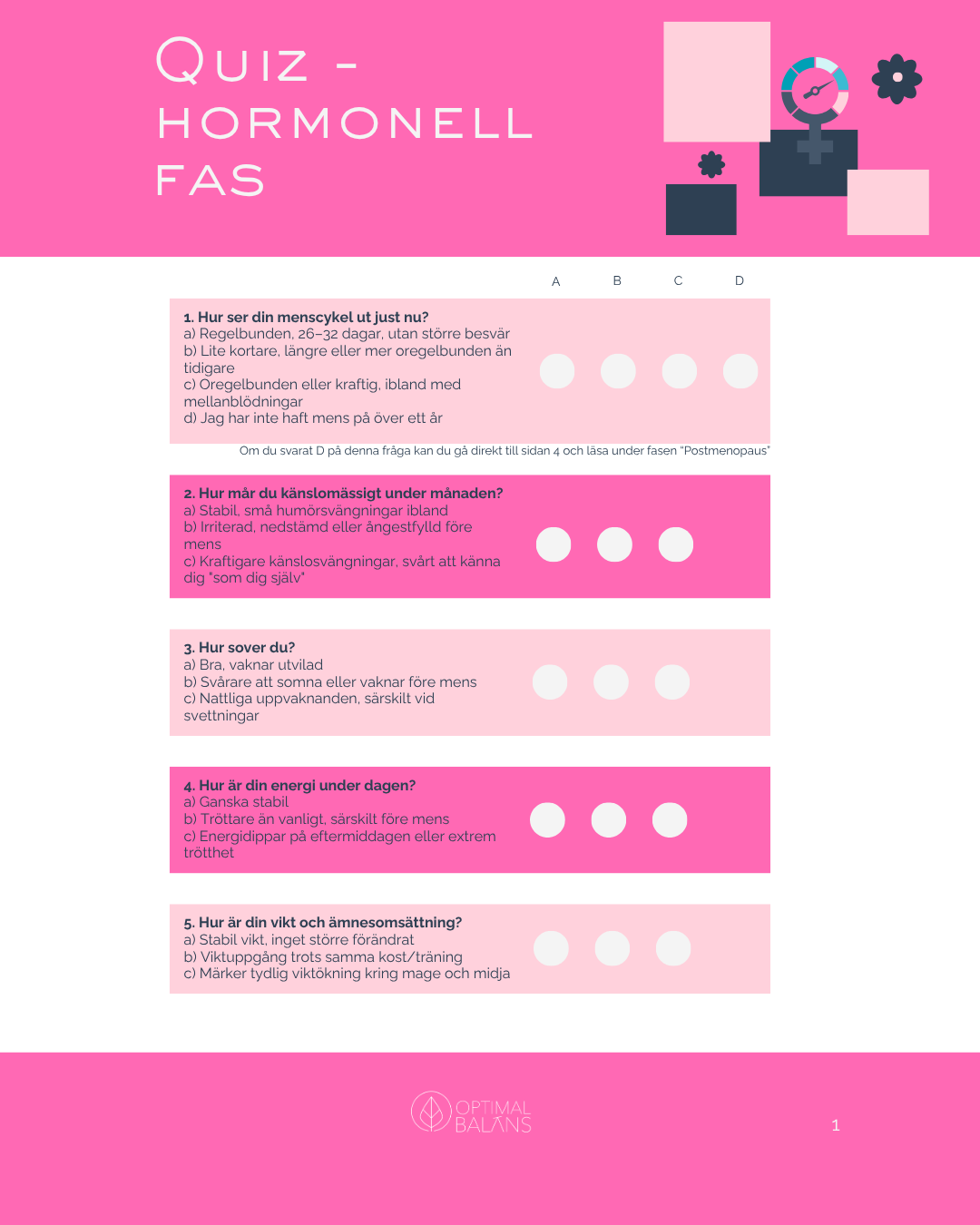 Ta det snabba quizet och få reda på mer om din hormonella fas – plus konkreta tips för att må bättre direkt.
